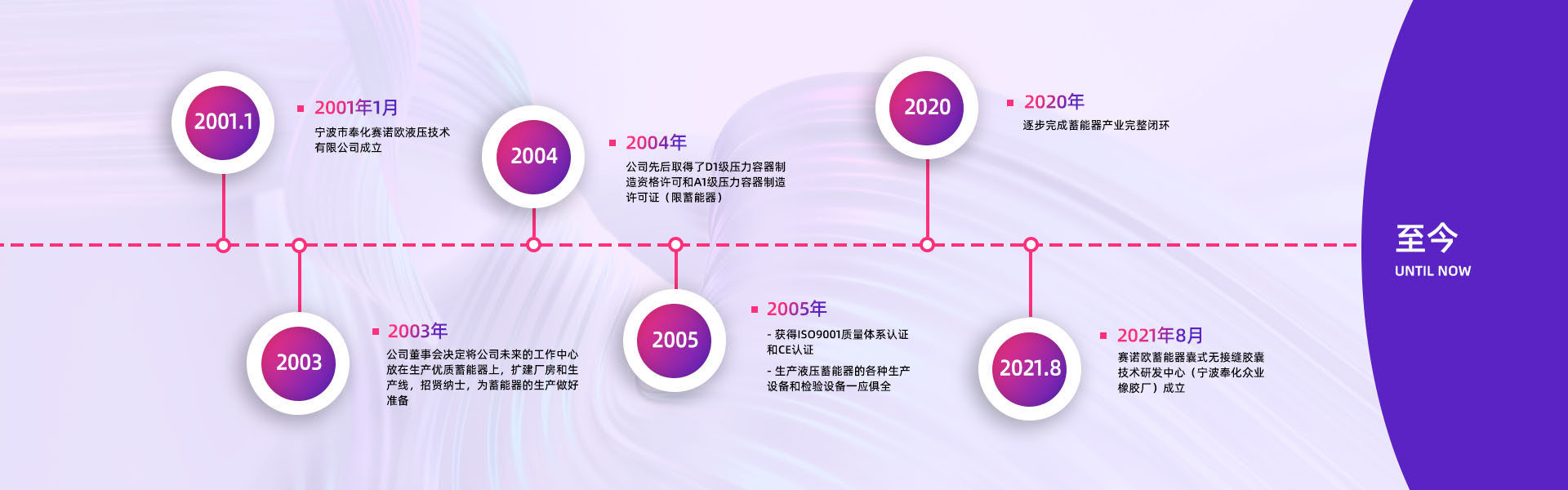 寧波市奉化賽諾歐液壓技術(shù)有限公司創(chuàng)建于2001年7月,是國內(nèi)優(yōu)秀的液壓蓄能器專業(yè)制造公司,制造設(shè)備齊全,檢測手段完善。同時也是探索蓄能器囊式結(jié)構(gòu)一體化的科研創(chuàng)新型企業(yè)。      2001年,公司董事會決定將公司未來的工作重心放在生產(chǎn)優(yōu)質(zhì)蓄能器上。公司一方面著手于廠房擴建和生···